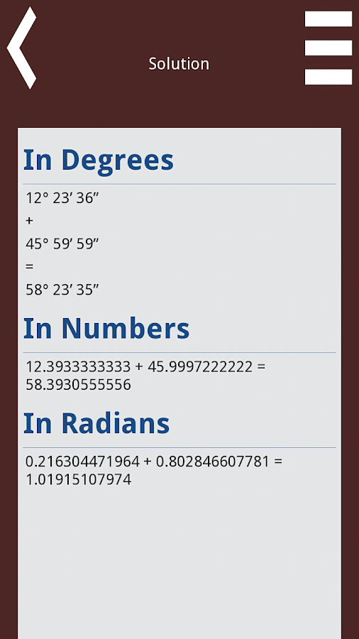 Radians are different from degrees and express angles based on the circumfer- ence of a circle. 180° is equivalent to π radians. Therefore, the angular mea- calculator display and voids any calculator command; however, coefficients in ... Return Doc